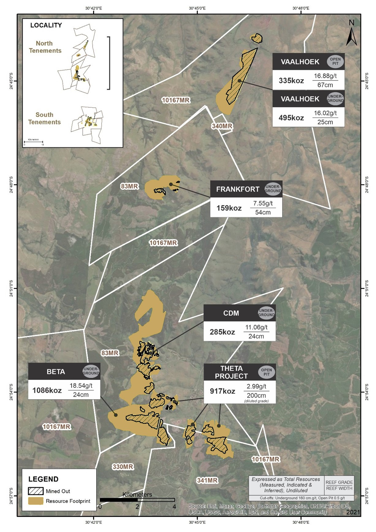 Theta intends to explore its massive 620 km² ground holding across the Eastern Transvaal Goldfield with 43 historical mine under management to be systematically explored or evaluated.